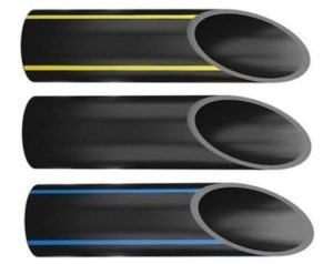 Полиэтиленовые трубы различаются между собой внешне, благодаря чему можно определить визуально, для каких целей они предназначаются: с синей продольной полосой используют только для проведения водоснабжения по ГОСТ 18599-2001, а с желтой полосой — для газа. Трубы бывают разного диаметра и толщины стенок, а соотношение этих параметров обозначается как SDR.